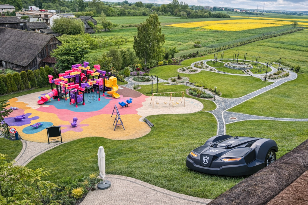 W ramach realizacji projektu „Innowacje i Dywersyfikacja w Leśnym Dworze – Nowa Era Usług HoReCa” wdrożono nowoczesne rozwiązania w zakresie automatyzacji utrzymania terenów zielonych.
